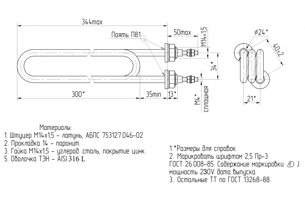 ТЭНы подходят для водонагревателей, произведенных после 2009 года.ТЭН-193А 10/5,0Х220 для водонагрев..